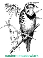 This chapter characterizes grassland birds as species that utilize grasses at some point throughout the year. These species can also be distinguished into two groups: grassland dependent and independent. Dependent species use grasslands for all of their habitat needs. Independent species use grasses for one or two habitat components while also utilizing other areas, such as forests or wetlands, for their habitat needs. For example, the American goldfinch prefers shrubs and small trees along with intermediate grasses to fulfill its habitat needs. The grasses are used for food and nesting materials. An example of a grassland dependent species is the eastern meadowlark. It only utilizes grasslands for all of its habitat needs. Edge-sensitivityGrassland birds also have a preference for the amount of unfragmented habitat available. Edge-sensitive grassland birds are those with the lowest tolerance for fragmented habitat. These are also usually the species that prefer only grasslands (grassland dependent species). Conversely, species that live in more than one habitat usually have low sensitivity to edge. Increasing edge for a certain wildlife species will also detrimentally impact other wildlife species. When grasslands are fragmented, many grassland birds are subjected to nest predation from crows, jays, skunks, raccoons, opossums, foxes, and cats. This problem reiterates the importance of expansive grasslands for the survival of declining grassland bird species.