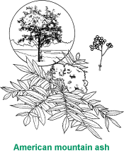 Pyramid-shaped American mountain-ash, tamarack, and spruces,