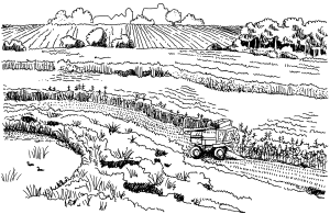 Field corners, rocky and low-yield fields, eroded gullies, and other odd places that cannot (and should not) be cultivated provide good wildlife habitat if planted with a mixture of trees, shrubs, and grasses or left so that plants recolonize the area -- which is less work than planting. Turn them into shelterbelts by planting alternating rows of trees and shrubs. Fruit-producing plants furnish food and cover for many species. A few rows of grain next to these grown-up odd areas increases their value during winter. Do not disturb these parcels by grazing, burning, or mowing more than once every five to 10 years, preferably treating a small segment at intervals rather than the entire piece.