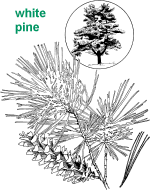 Common mammals found in dry conifer forests are the badger, coyote, snowshoe hare, and black bear. Birds include the upland sandpiper, northern harrier, red crossbill, hermit thrush, bluebird, red-tailed hawk, American kestrel, and raven. The Kirtland's warbler is the best known of the rare species, which include the prairie warbler, black-backed woodpecker, sharp-tailed, and spruce grouse. The frosted elfin butterfly and secretive locust are two other rare creatures that inhabit dry conifer forests. A large number of rare plant species are also found here. DRY MESIC CONIFERS are evergreens that grow on dry, sandy soils. The key tree species of this type is white pine. Because white pine was favored by loggers it no longer dominates dry mesic sites.