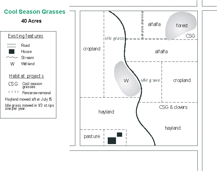 corridors and food/shelter habitats for other kinds of wildlife. Also, cool season fields larger than 80 acres begin to have less favorable impact on edge-loving species such as deer.