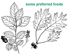 Females (sows) produce a litter every other year, depending on food availability and each sow's health. When food supplies are short, the female may skip two or more years between breeding. The fetuses only develop if the sow has stored enough body fat to survive over-winter and provide milk for cubs until spring. By late January most pregnant females have given birth to an average of two or three blind, nearly naked cubs, each of which will weigh about a half-pound. By the time she leaves her den, the cubs will have gained 10 to 12 pounds, depending on the number of cubs. They will remain with their mother for 1 1/2 years. In Michigan, den sites are typically brushpiles, open nests, or excavations under standing trees. An open nest is created by bears breaking off twigs or branches for a base and then adding grass, tree bark, and leaves for bedding. Bears will also hibernate in caves, rock crevices, burrows, slash piles, windfalls, and other forest debris. Bears have even been known to den in old beaver houses, road culverts, and basements of abandoned homes. Seasonal Foods