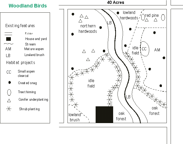 - Maintain sites larger than 40 acres, and leave woodlands as undisturbed as possible.