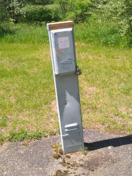 8/4/2022 5:11 PM 81713 FCRA Camper Pedestal site 64-- note damage and padlock-- one of 10 sites without electricity due to underground wiring break.jpg