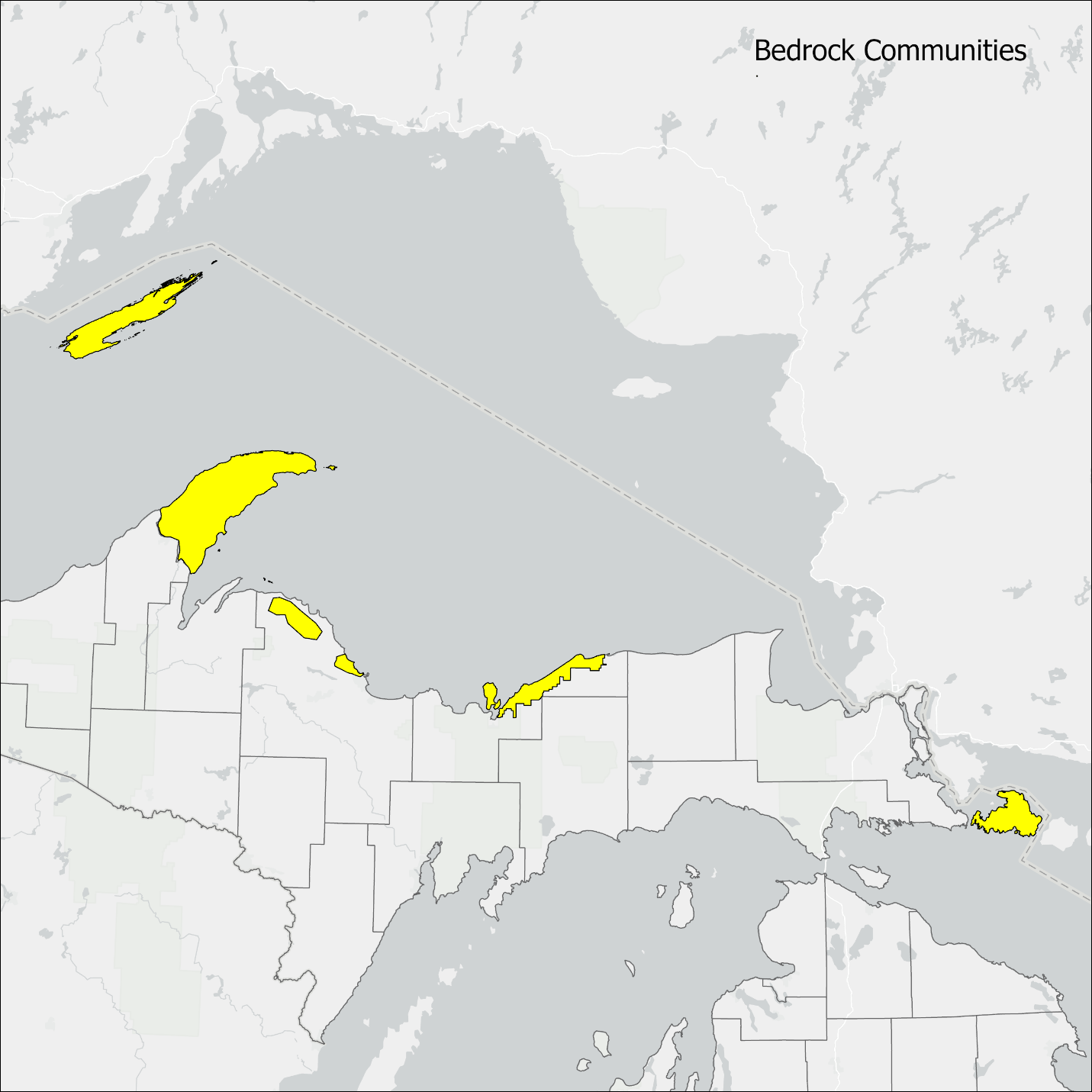 Known bedrock communities located upon state and federal public lands are generally identified and protected within management systems and provide continuity of habitat for associated focal species. For example, all known bedrock communities on state forest land are protected as high conservation value Ecological Reference Areas and one of the highest concentration of bedrock communities in Michigan is the federally designated wilderness on Isle Royale.