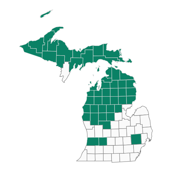 The boreal chorus frog (Pseudacris maculata) is a very small, brown, reddish, tan, gray or olive frog (adult length 0.75-1.5 in) with three dark, sometimes broken, stripes on its back (Harding and Mifsud 2017). It also has a distinctive white or cream-colored stripe along the upper lip bordered above by a dark stripe from the nostril through the eye and along the side of the body. The breeding call of a boreal chorus frog is a short, rising, scratchy "cree-ee-ee-ee-eek" which has been compared to the sound made when running a thumbnail down the teeth of a fine-toothed comb (Harding and Mifsud 2017). Boreal chorus frogs primarily occur in rocky shoreline/bedrock lakeshore habitat (Egan et al 2015) and adjacent boreal forest as well as inland bogs and swamps. The species breeds in shallow, low-current waters: including wave-, rain- or snowmelt-fed pools along shorelines, inland boreal forests, bogs and swamps in Michigan, as well as marshes, glacial kettle ponds, beaver ponds and the marshy margins of lakes throughout its broader range (Hammerson 1999, NatureServe 2025). Chorus frogs tend to remain near their breeding sites year-round, spending most of their time hidden beneath logs, rocks and leaf litter or in loose soil or animal burrows and hibernating in these places as well (Smith 1983, Smith 1987). Information on the species’ current status, distribution and abundance across Michigan is lacking. Boreal chorus frogs have been documented from one county in Michigan, Keweenaw County. This species has been documented from 1 site in 1 county in Michigan to date in the state's Natural Heritage Database and this occurrence was observed within the last 20 years (MNFI 2025). Although it has only been reported from one county in the western Upper Peninsula, it has potential to occur in other counties in this region of the state.