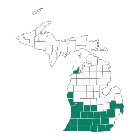 Blanchard’s Cricket Frog is a member of the treefrog family. Adults have moist, warty skin that is gray, reddish brown, green, or olive colored. As their name implies, Blanchard’s Cricket Frogs are small, only 1.5 inches. Blanchard’s Cricket Frogs are the most aquatic of all tree frogs. Specific habitat needs include permanent ponds, lakes, slow-moving streams and rivers and other waterbodies and wetlands with aquatic vegetation and sparsely vegetated muddy or sandy shorelines or mud flats. Historically, Blanchard’s Cricket Frog occurred throughout the southern third of Michigan’s Lower Peninsula. There are recent observations (2014 – 2024) throughout the historical range, although information on abundance, potential viability and management needs of existing populations is lacking.