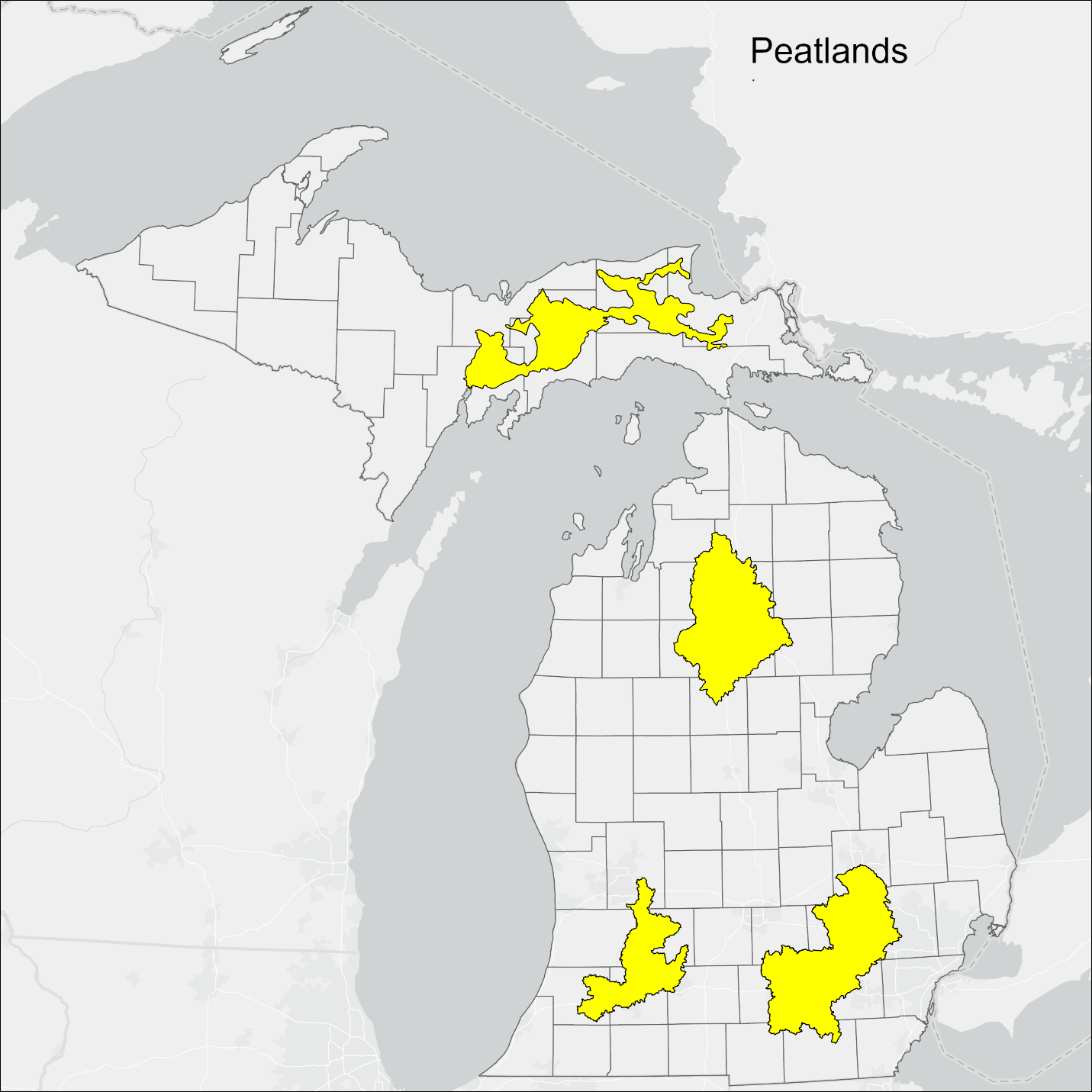 Many known peatland natural communities (bogs, muskeg, patterned fed, and northern fen) located upon state and federal public lands are generally identified and protected within management systems and provide continuity of habitat for associated focal species. For example, almost all known peatland communities on state forest land are protected as high conservation value Ecological Reference Areas and the largest federal peatland in Michigan is located in the Seney National Wildlife Refuge.